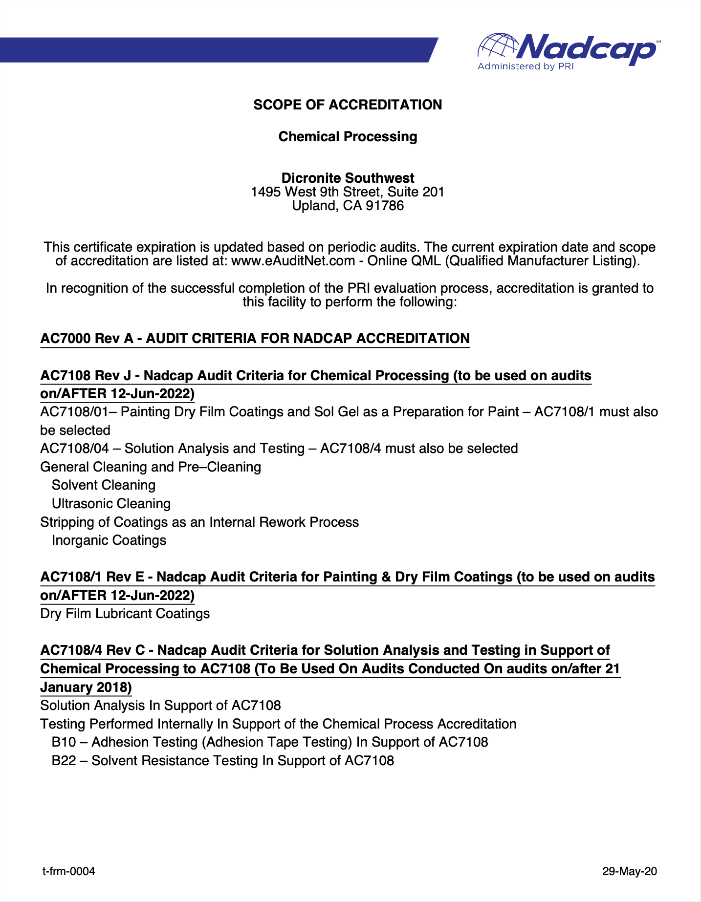 Nadcap Chemical Processing Cert Exp 11-30-26